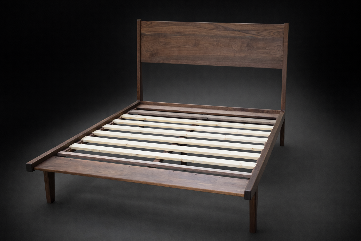 Mid-Century Modern of Walnut. This is a Queen but any mattress size is possible.