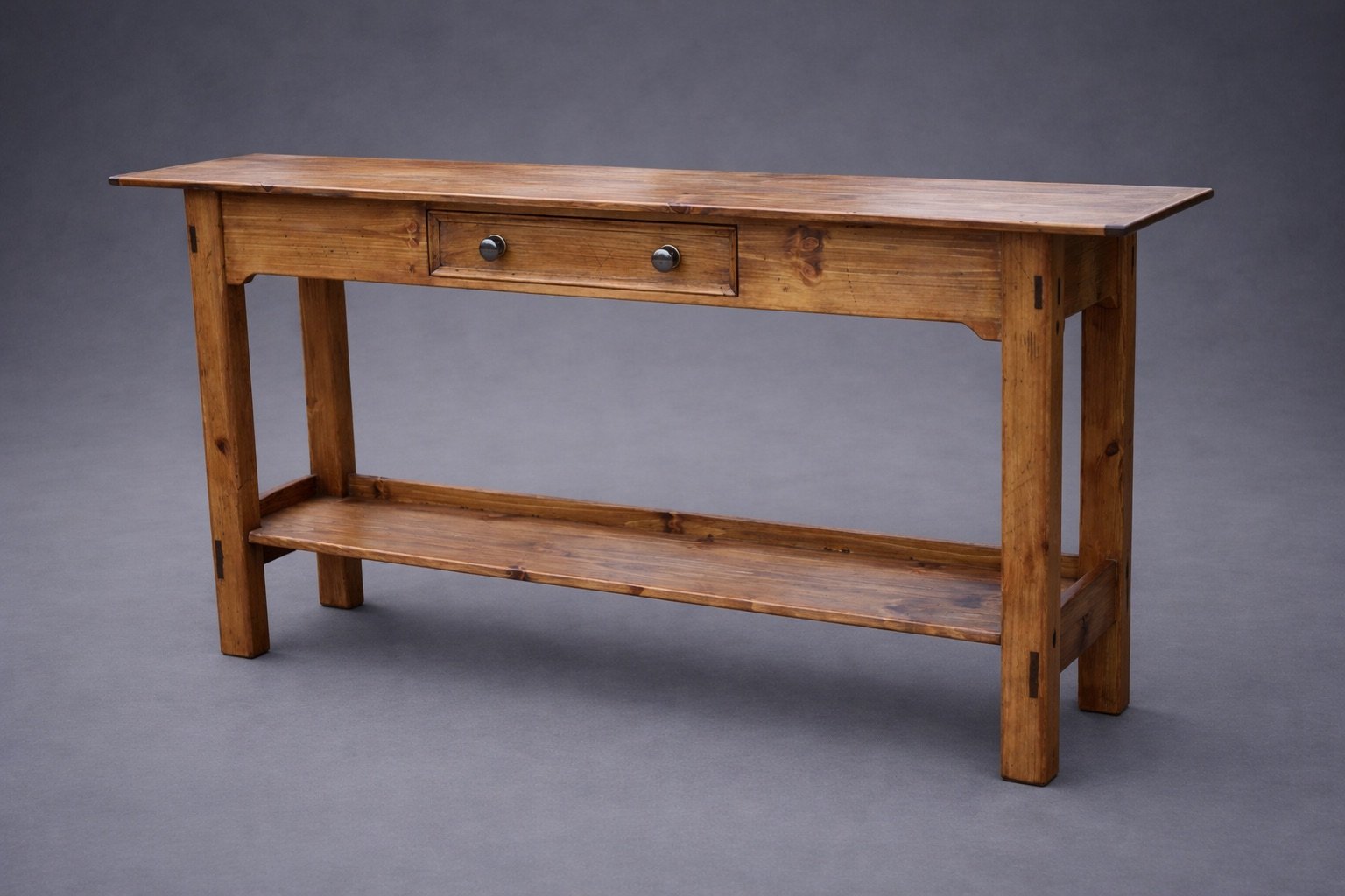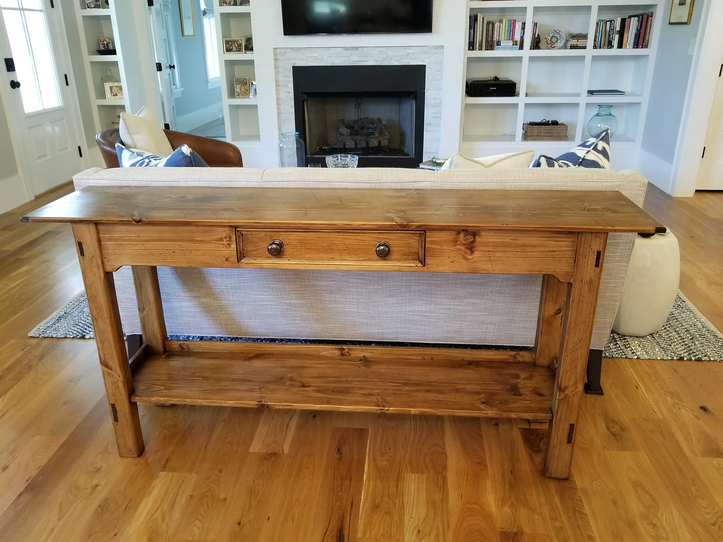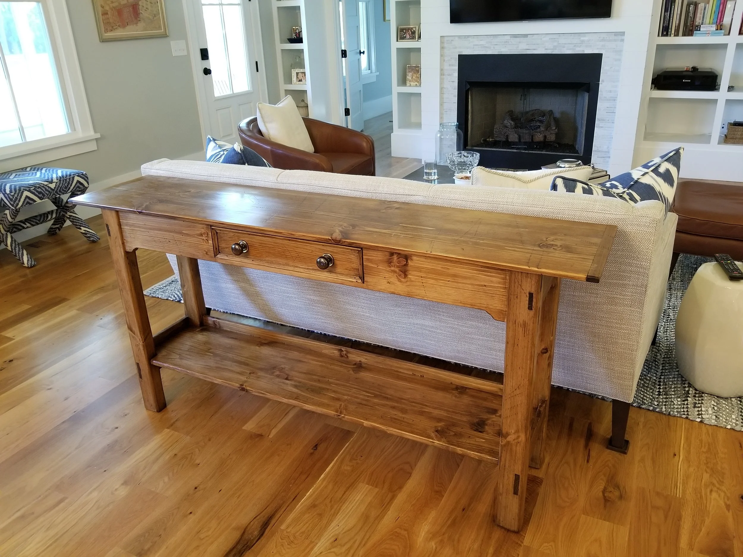 The Rustic Sofa Table is a replica of an 19th century Irish sofa table. It is white pine and a wax finish.