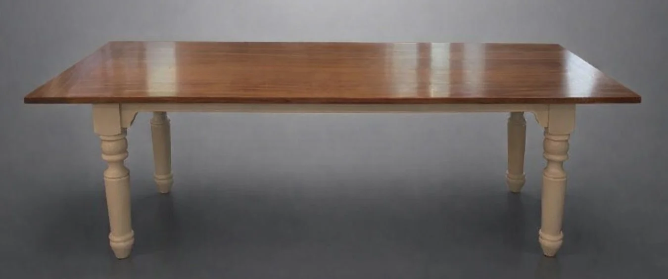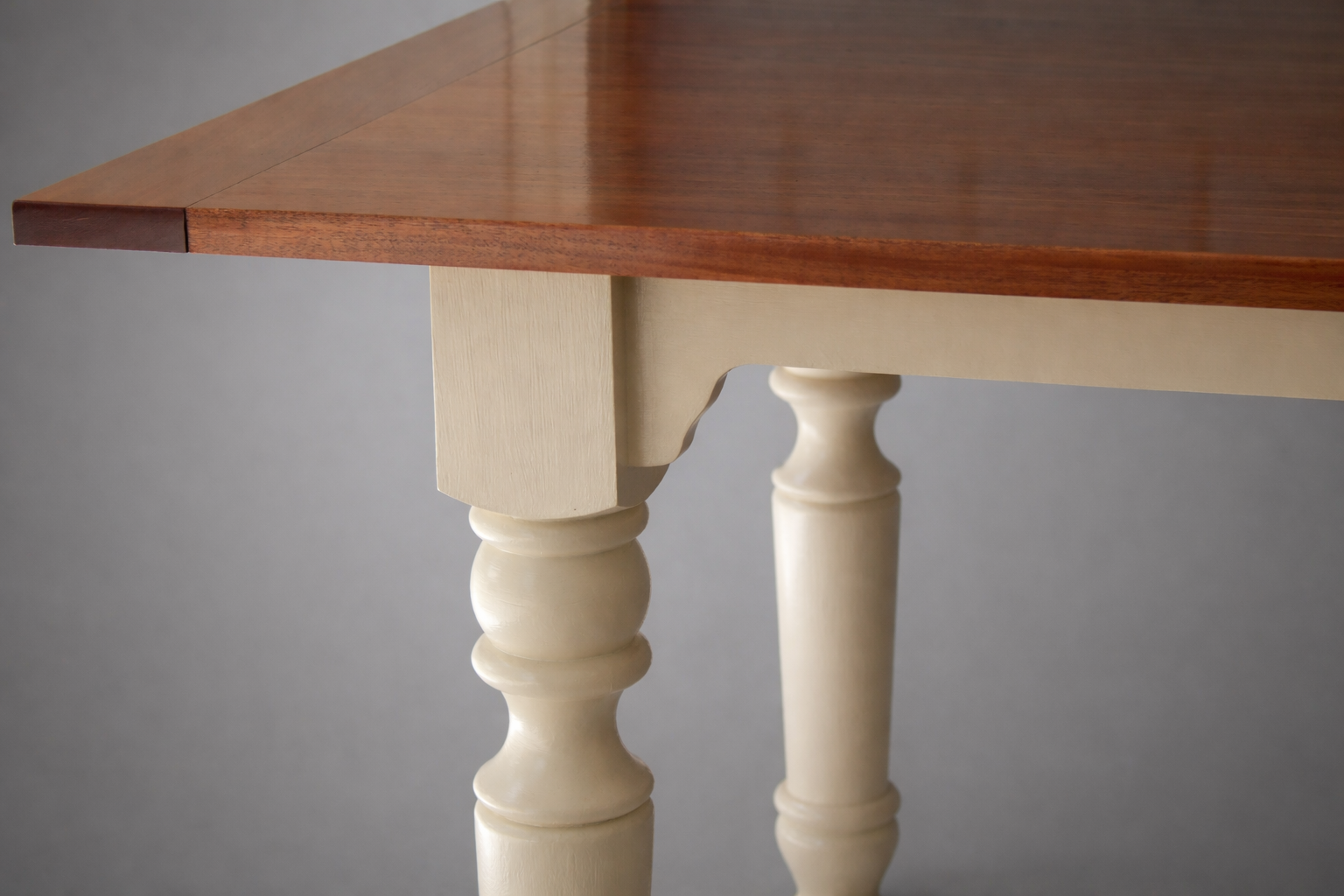 African Mahogony Top with Painted base and turned legs. Top coat of several layers of Satin Polyurethane